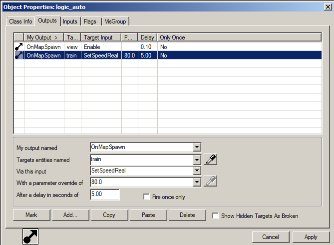 "OnMapSpawn" "train,SetSpeedReal,80.0,5,-1"