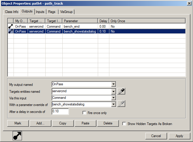 "OnPass" "servercmd,Command,bench_showstatsdialog,0.1,-1"