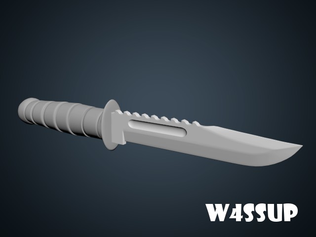 i'm making the kabar knife but added 1 of my own feature.... somewhat half way done.. just need to unwrap it and need a texture... (anyone wanna make me a texture?)