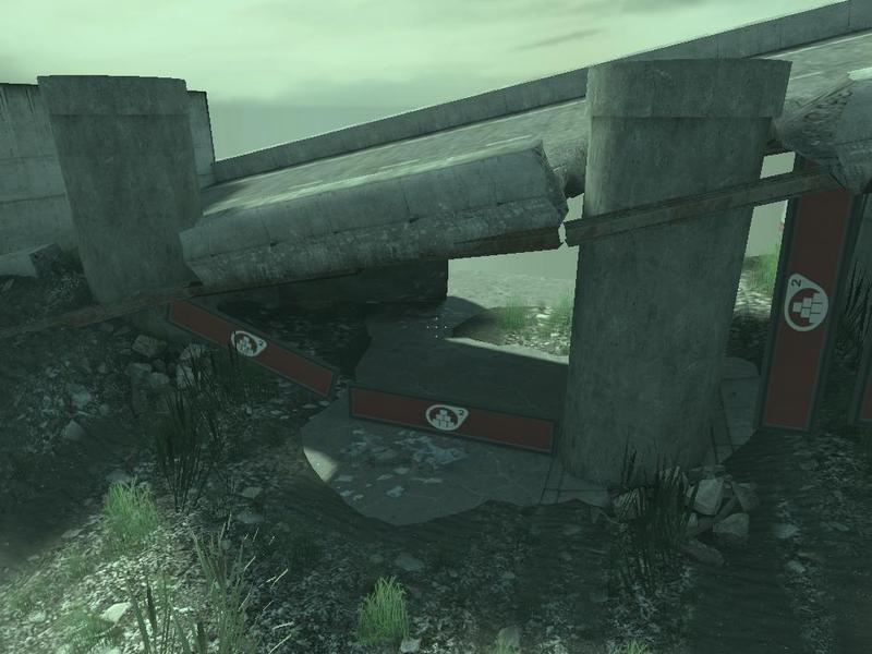 With the bridge in place it seemed only fitting for the area under the bridge to be the location for the flag, the structure was tweeked a little here and there to make sure the block sizes currently in game could fit nicely with freedom of choice. And with this being a standard SF gamestyle map the base to base combat would force teamwork in protecting walls and flag defense so the bridge defense would not be 100% overpowered due to the mass of concrete above the flag.