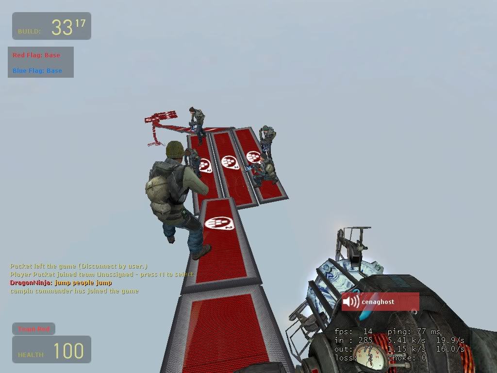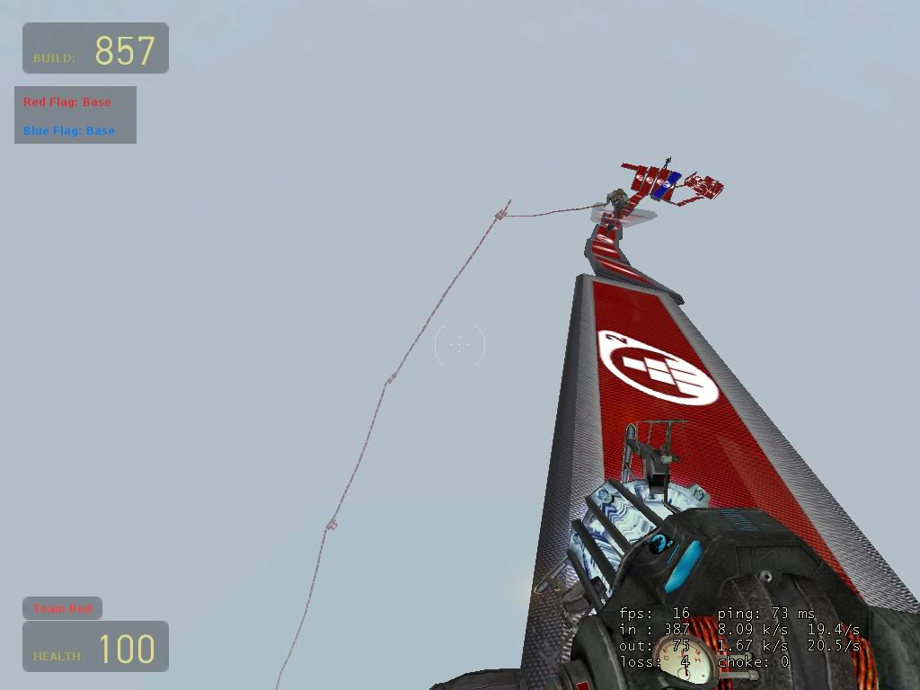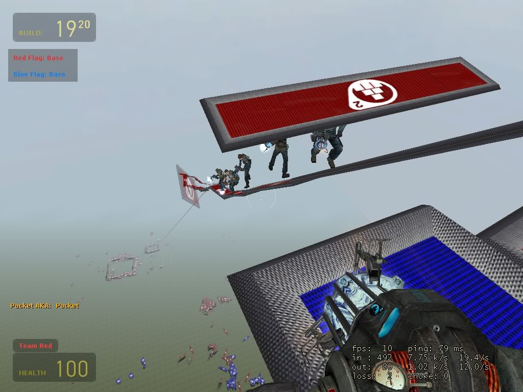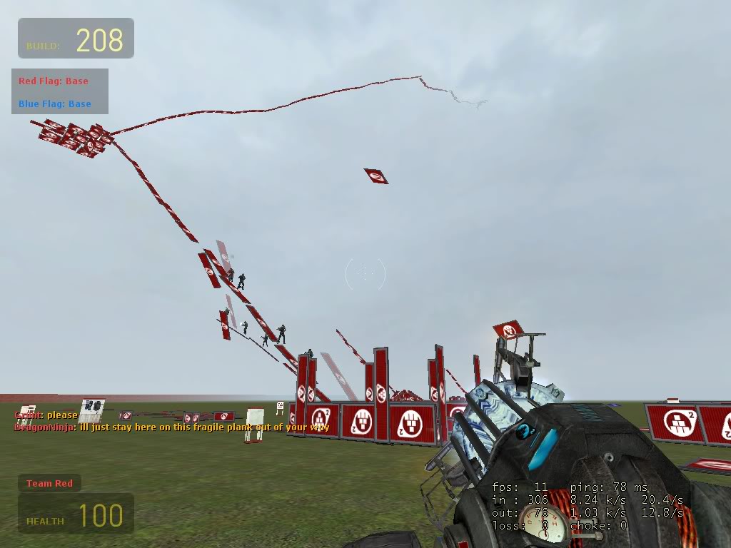 Last night, within the server of DigiS, we created the biggest ramp within sourceforts history! Mainly created my me and pastori (with dragonninja being the bouncer), we managed to reach from the floor to the roof on sf_p_hugeflatmap! To do this we used around 400-500 blocks and it took about 2 hours to complete. It took around 3-6 minutes to clime, and that was if you didnt fall of in the process. The images cannot show the whole ramp because the fog blocks more than 2/3 of the ramp: