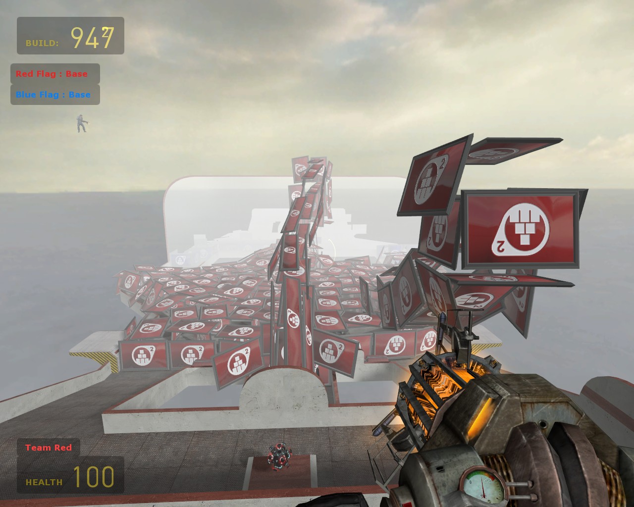 I was thinking, that one person would be IT, and placed on the blue team. the rest would have about 21 HP, placed on the red team. there would be no guns, cept the blue guy having a stunsick. and he runs around looking for people.