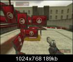The upper flag defense is hard to slamclimb, but it is easy to rocketjump in without hurting yourself too much, which makes it easier than the ordinary 35 Overload fort to double-rocketjump. Partly the reason for this being that the middle 2x3 (shown further down) of the flag defense needs to be placed so low in order to make it impossible to crawl in using the 1.5x4 walls.