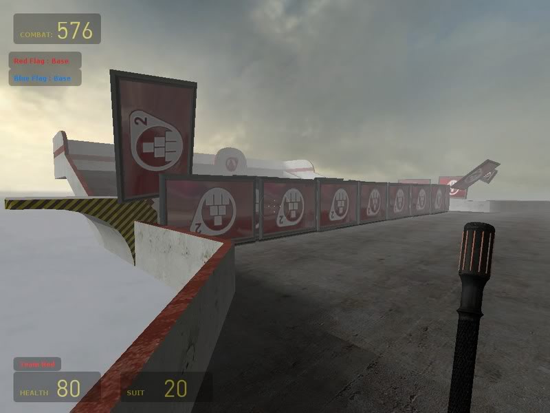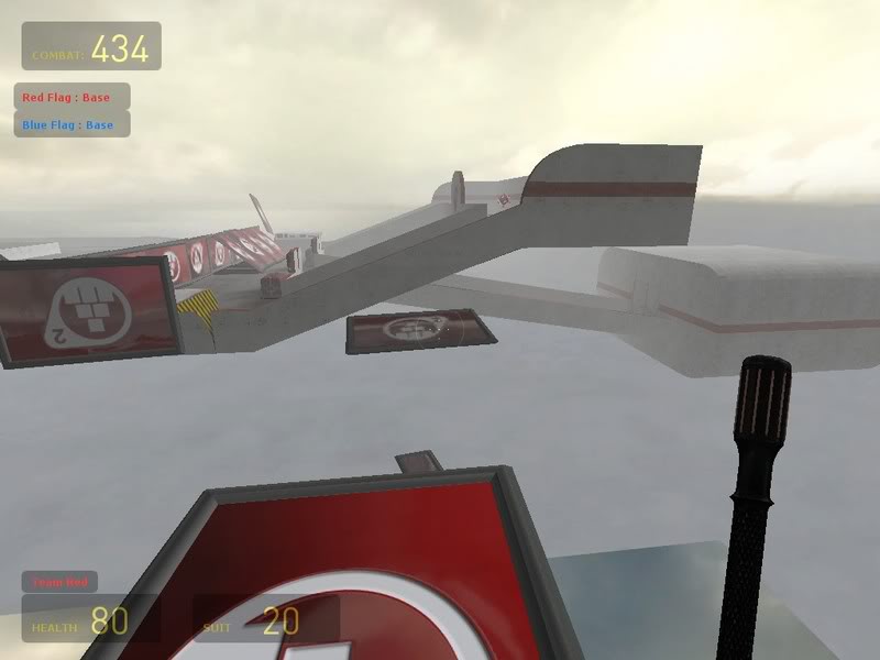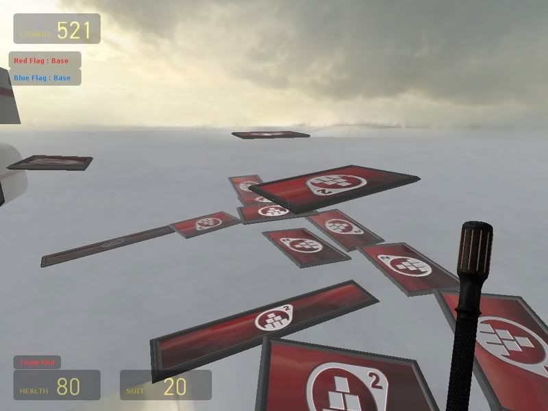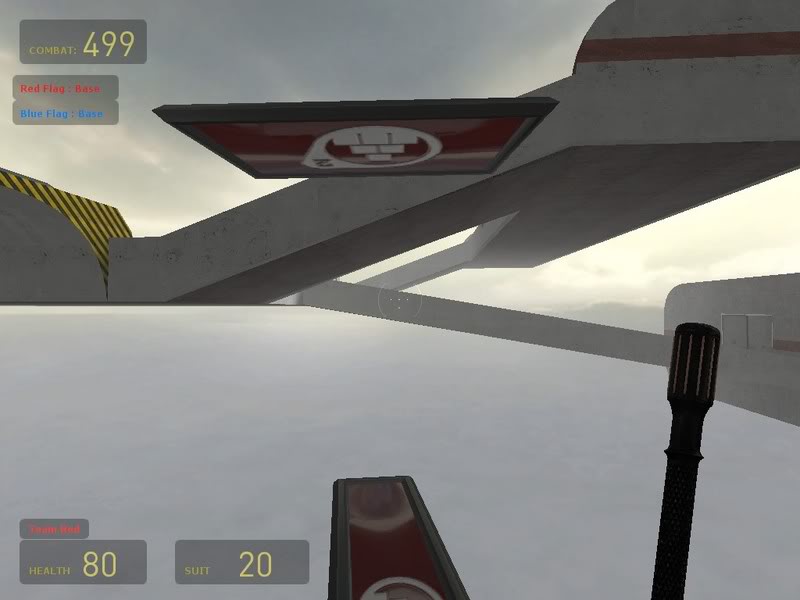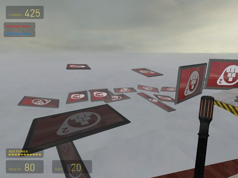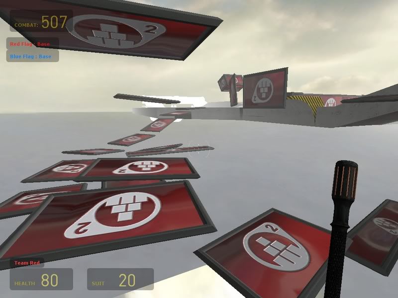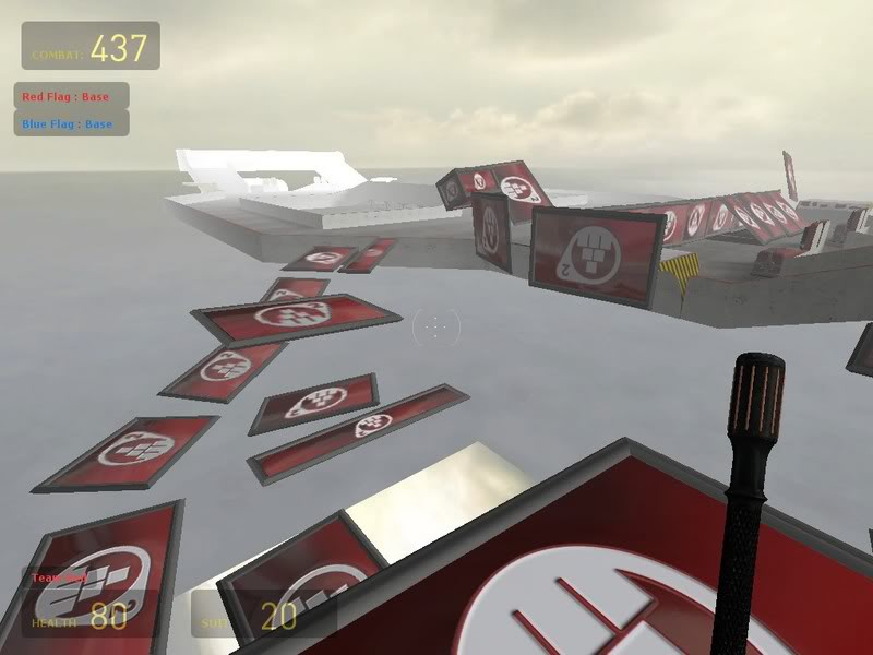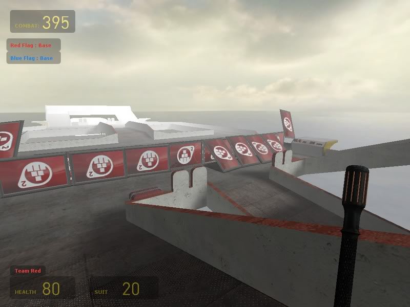 Also, this setup would be too hard to cap the flag with. The only real way around that would be to have a flag-drop, but I don't know if that's considered cheating or not.