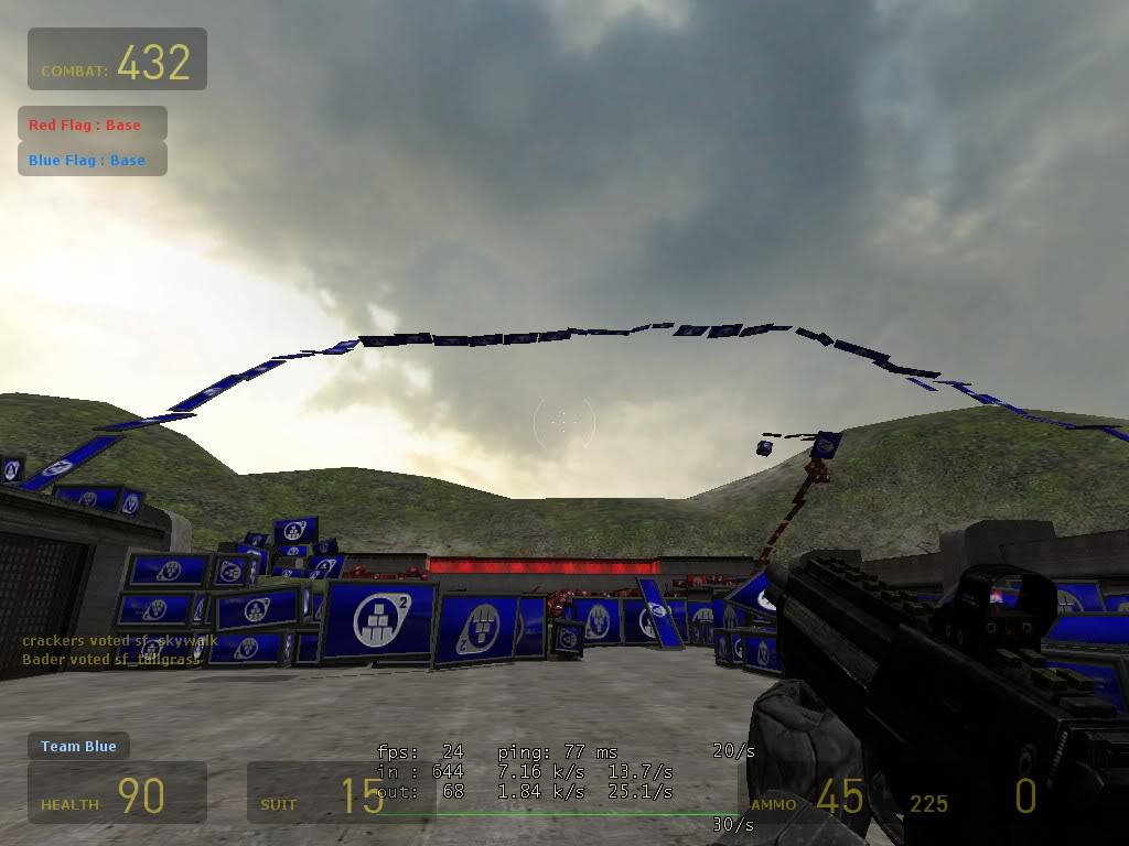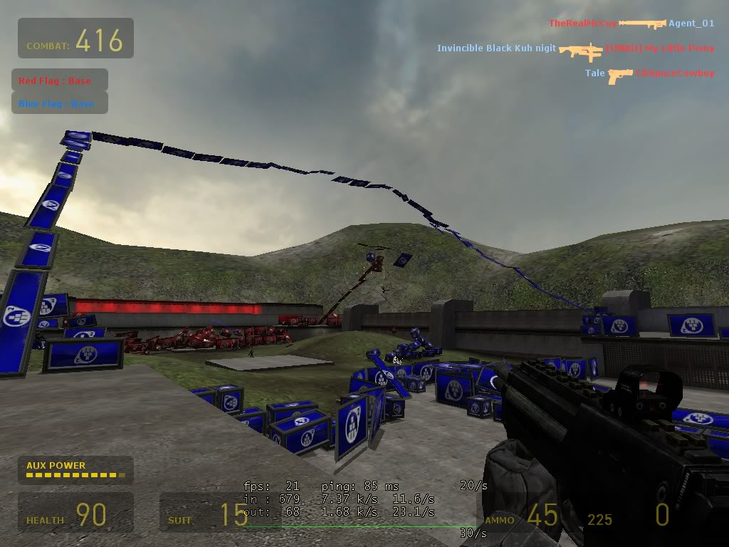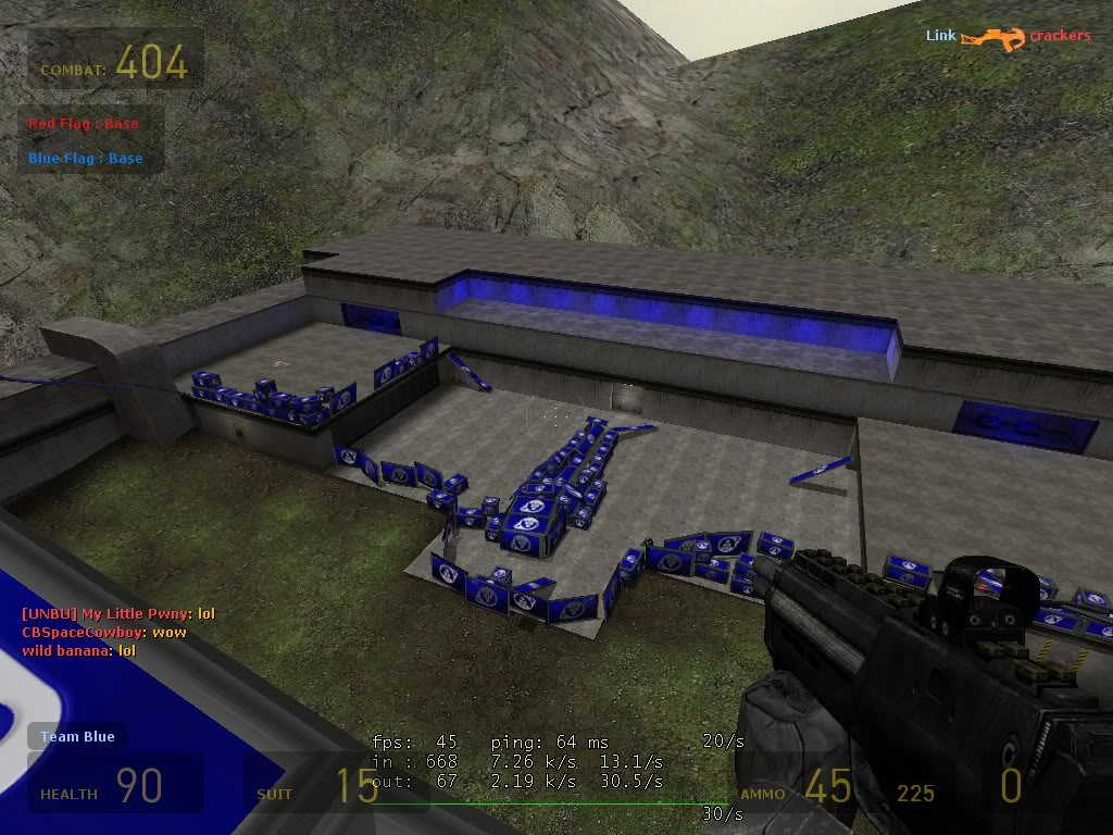 Our fort had a bridge connecting our 2 ramps from both sides and also had a long tunnel to our flag. You'd enter right from our spawn, so it was very hard for them to get through, and they barely ever got to our flag. We won!