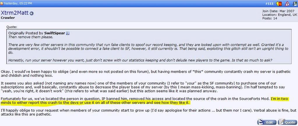 !!! But when you restrict it from sending you away it comes up with the xforts motd!