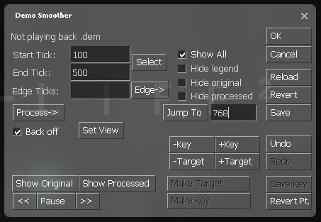 Source comes with a demo replay suite of tools, and the biggest and most useful for the movie-recording task is the smoothing tool. Here it is pictured below:
