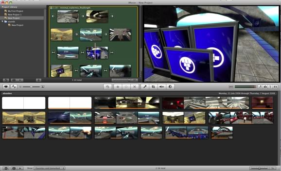 Once the movies were done and the audio was ready to import, all the AVIs were imported into iMovie. iMovie is a pretty basic video editor, greater in ability to windows movie maker but not exactly powerful. I could have used Final Cut Pro, however iMovie had all the tools required for this project, and Final Cut Pro was not designed for making internet-based media.