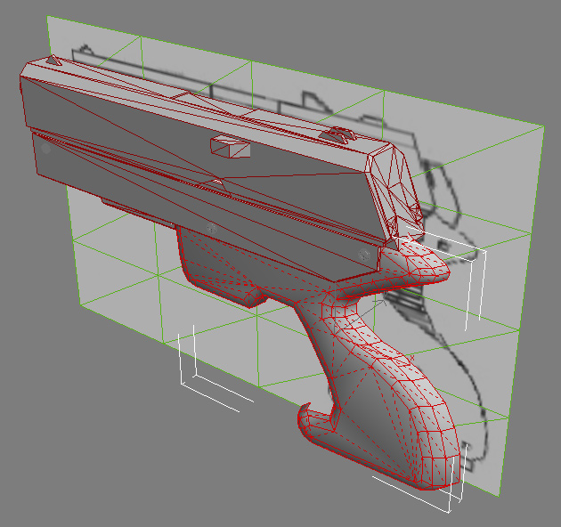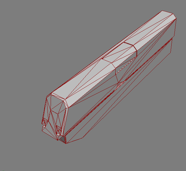 The requirements of the pistol model were for functionality and cleanliness of design, though preferably maintaining a unique profile. The pistol would receive a large amount of screen real estate, and could afford a relatively large polycount given the size of the model. This concept accomplishes these requirements well. I like the look of the slide and ejection port, as well as the unique grip design. I anticipate that most time will be spent on the grip and internal ejection mechanism so as to ensure the final model animates interestingly. Details such as the slide grip and bolts will be normal mapped on, though I may produce high-resolution meshes for these details.