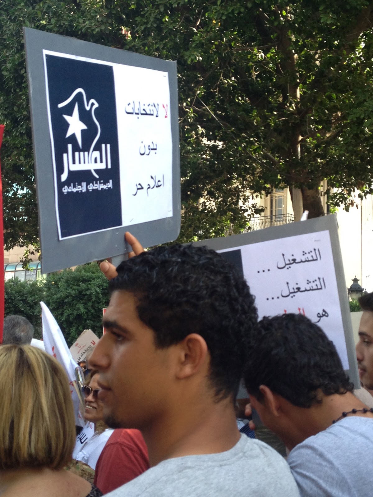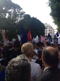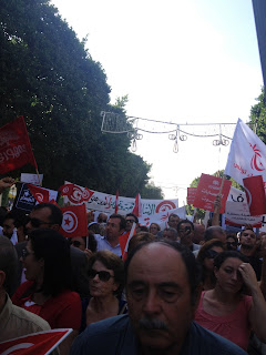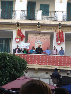 A l'aéroport mon père et deux amis ( dont l'un des blessés de la révolution) m'attendaient pour me conduire à Dar Essabah ... Émue de voir Sami Taheri -syndicaliste de renom et professeur universitaire- venu à la rescousse des grévistes de la faim. Émue de la détermination du personnel de Dar Essaba-toutes catégories professionnelles comprises- à défendre leurs droits, l'indépendance de leur institution et la liberté d'expression. Émue d'entendre des journalistes me demander de les soutenir encore plus...Émue jusqu'à en avoir les larmes aux yeux et la gorge nouée...