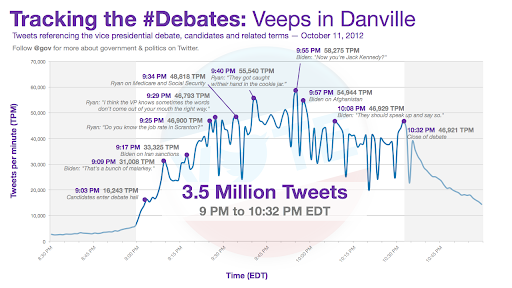 election.twitter.com) scores for the candidates, their running mates, and moderator Crowley. We’ll also share an overview of the night’s biggest moments and trends. If you’re interested in seeing the real-time volume of Twitter conversation (Tweets per minute, or TPM) during the debate, tune into
