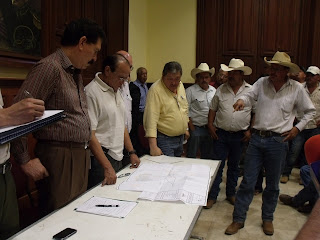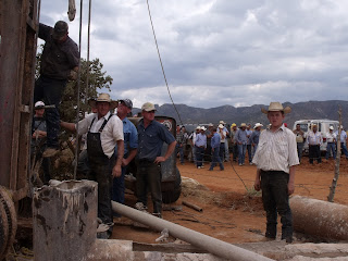 I had never before witnessed a well being drilled but was fascinated to watch the reversal of the well drilling,  as the rig lifted the large-diameter pipes out of the ground, laying them on the slurry-stained ground. It was like a  work-based reality TV show, with couple hundred farmers from the Carmen basin on the set watching.  Although some harsh words were exchanged – mostly about threats to the livelihoods of the Mexican farmers from illegal Mennonite water withdrawals from the basin – the scene was remarkably calm -- in large part due to the impressive leadership of El Barzón leaders. So quickly was the well equipment being dismantled that the discussion turned to the next well and small dams that would be shut down or destroyed.