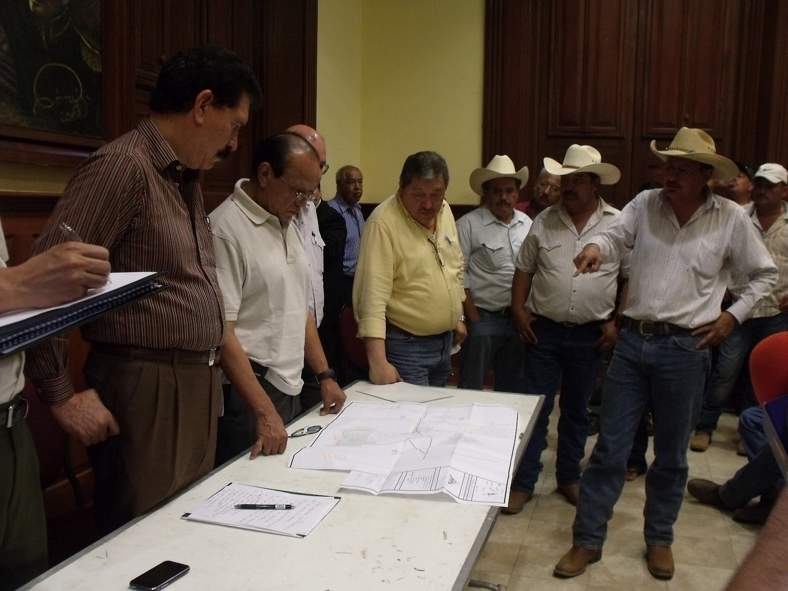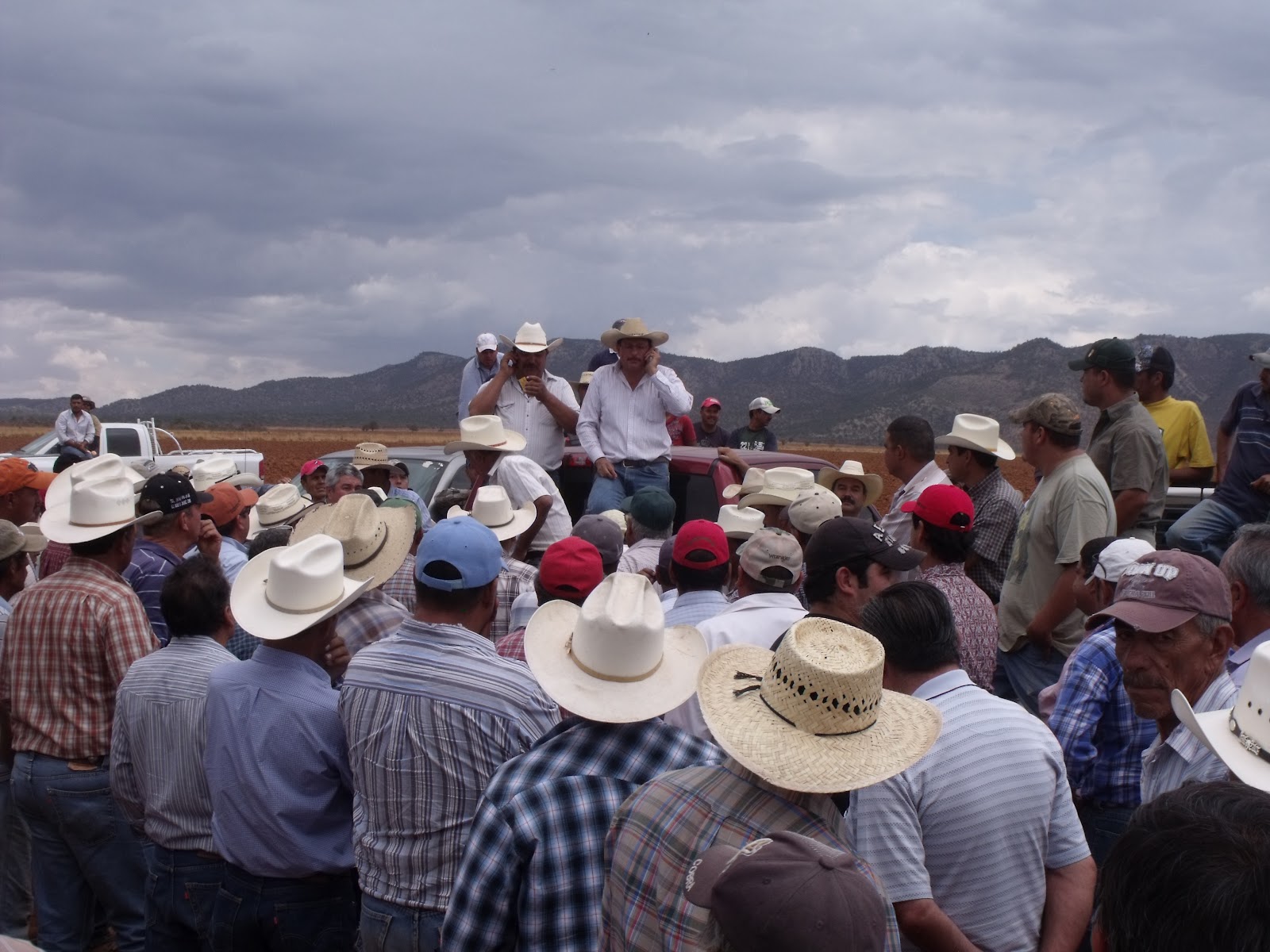 By 11 o’clock on July 2 several hundred small farmers (pequeños propietarios) and ejidatarios had gathered at the crossroads. The previous week Martín Solís, the state leader of El Barzón, had met in Chihuahua City with officials of Conagua (National Water Commission) and state officials about the planned action, inviting their participation. Conagua representatives and other government officials promised they would be there to ensure that the targeted wells and check dams (marked on the plat map) were indeed illegal or irregular.
