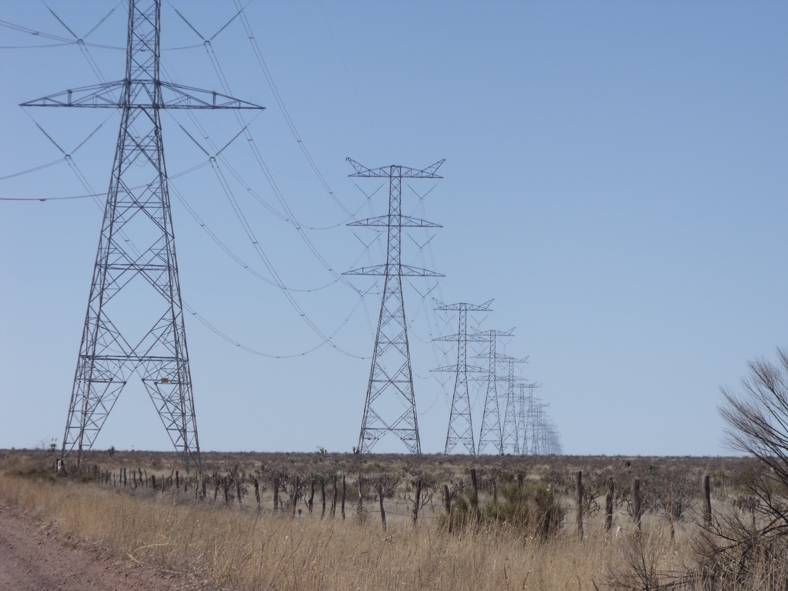 Today, the desert-farmland transformation is not the product of concrete dams but of steel transmission towers. These giant towers now march across the desert bringing electrical power to previously undeveloped and uninhabited stretches of Chihuahua.