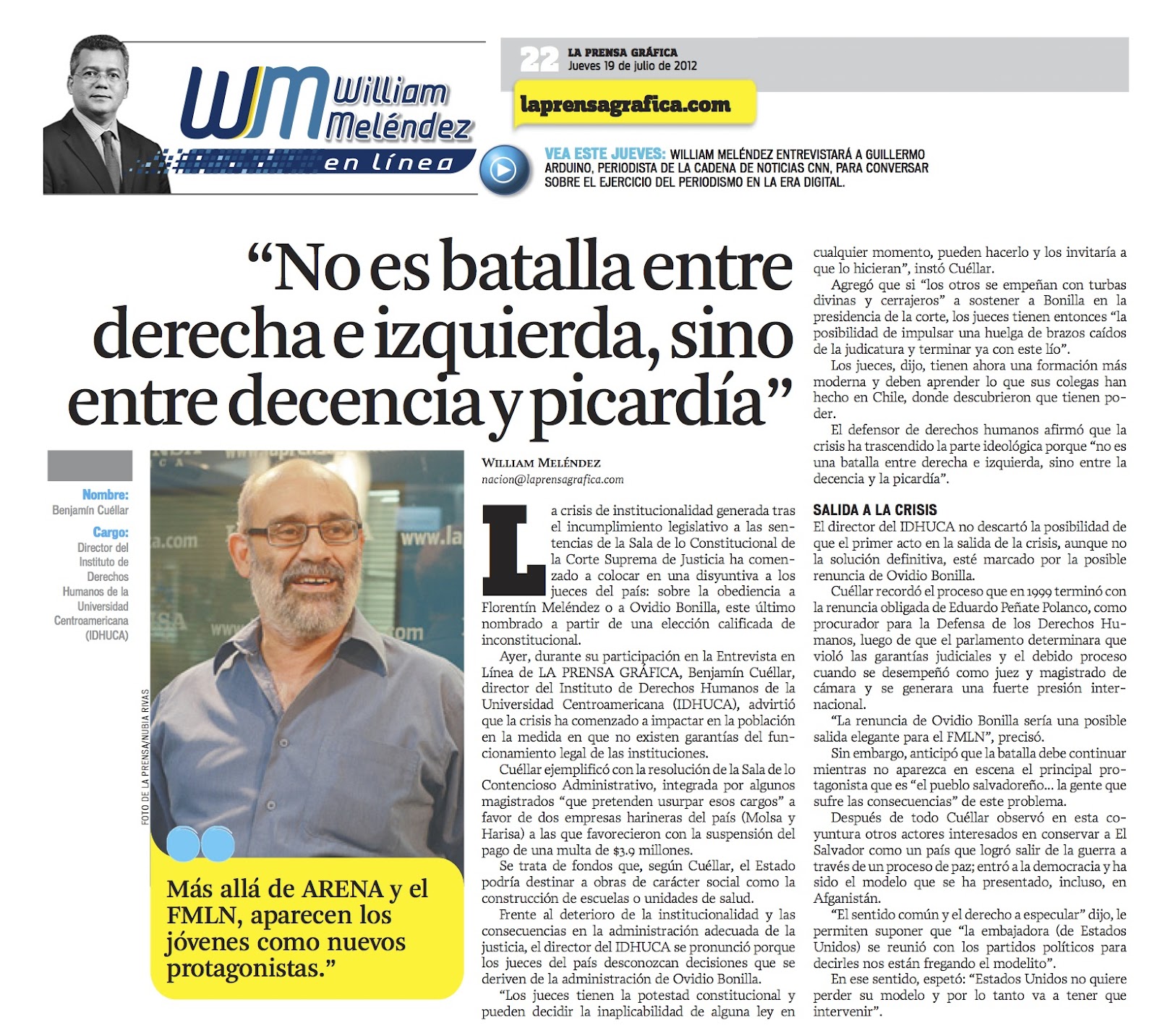 (Benjamín Cuéllar, editorial de la Radio YSUCA, 19/07/2012)