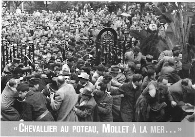 Lors de l'arrivée du gouvernement de gauche de Guy mollet en 1956, il y a déjà une grande tension en Algérie et qui pour certain ne peut que mener a la guerre (c'est le souhait du FLN )