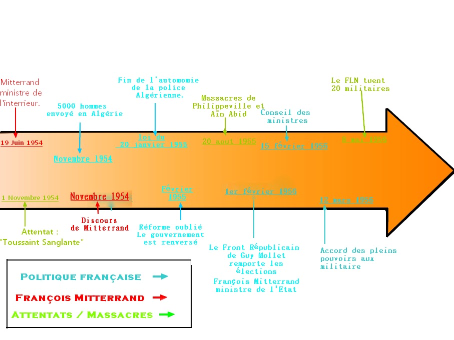 Mais suite aux soulèvements du Front Libérateur National (FLN), Mitterrand décide de mettre fin à l’insurrection. Le FLN est devenu l'ennemie numéro 1, il ne faut pas prendre le risque que ces insurgés politise les indigènes. Pour cela les forces répriment sans nuances et tout suspect est désigné terroriste ! De plus pour faire taire le FLN l'armée sort les armes lourdes .