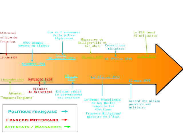 La guerre d'Algérie à provoquer la mort de 27 500 militaires français et européens d'Algérie et d'environ 250 000 musulmans .Une guerre meurtrière auquel la métropole et L'Algérie non fait que se répondre par des massacres. Mitterrand n'aura pas atteint son objectif ; de devenir président mais il aura montré sa pertinence au long de ses événements car malgré son opposition aux pouvoirs spéciaux donné aux militaire, F. Mitterrand n'a pas démissionné, peut-être par stratégie politique. Mais il faudra attendre 1881 pour qu'il deviennent enfin Président de la République.
