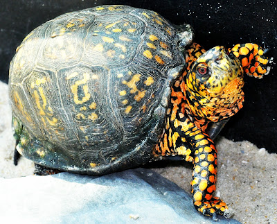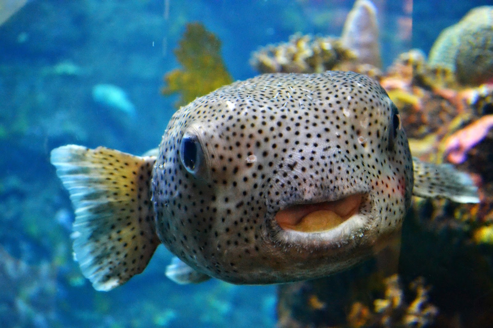 Aquarium staff introduced the spotted eagle ray to his new home on July 10. The young male, called "Twister", is acclimating well to the Aquarium’s largest exhibit and his new neighbors. Visitors can easily recognize the animal by his whip-like tail fin, the fluid winging movement of his large pectoral fins, a pronounced snout, and, of course, a white polka-dot pattern on the brown dorsal body.