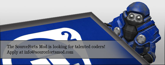 The SourceForts team is looking for a talented coder to help us out. The position is for a supplemental coder, not a lead. We want someone capable of working in a team oriented environment with at least two years of C++ experience. Familiarity with the Half-Life 2 SDK is a plus. The SourceForts team is a tight knit group of people who love working on the mod, and we hope to add one more to our group. If you're interested e-mail us at info@sourcefortsmod.com.
