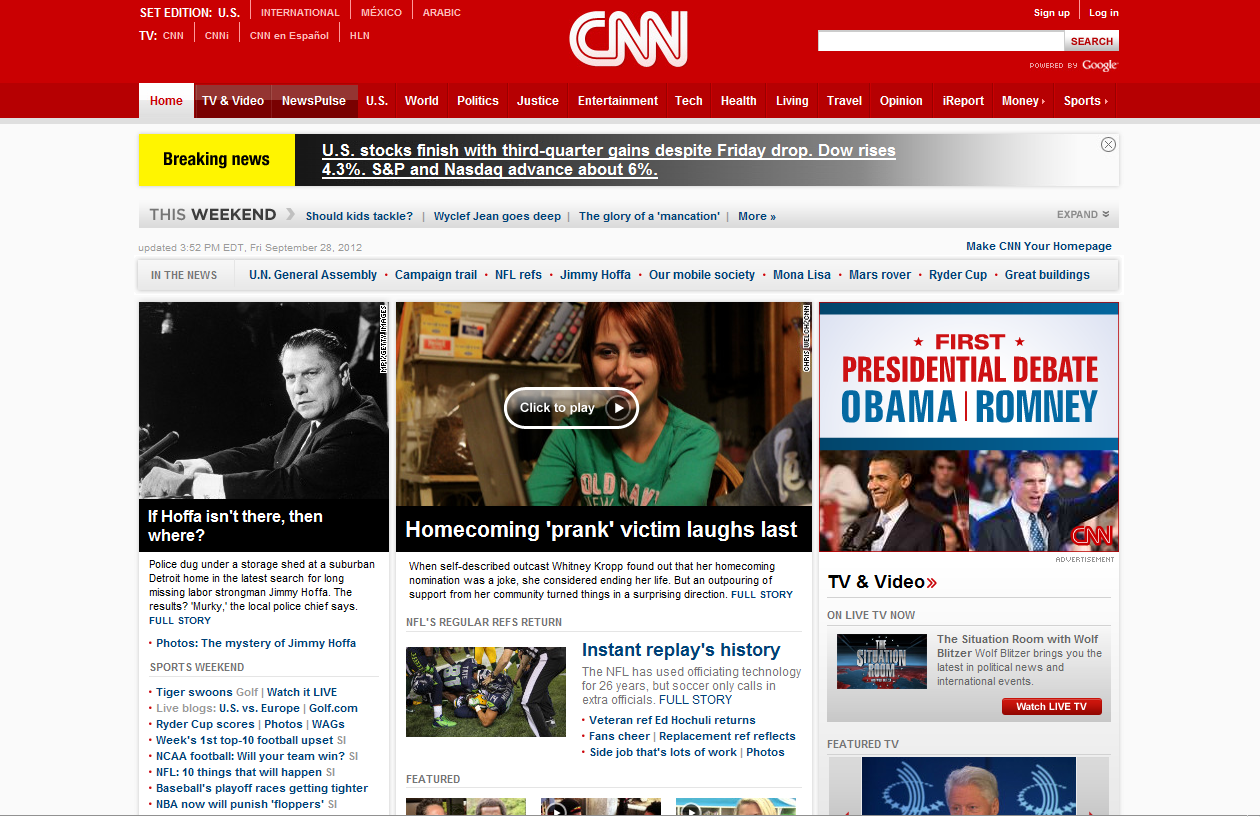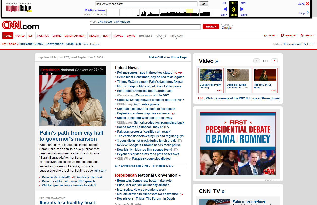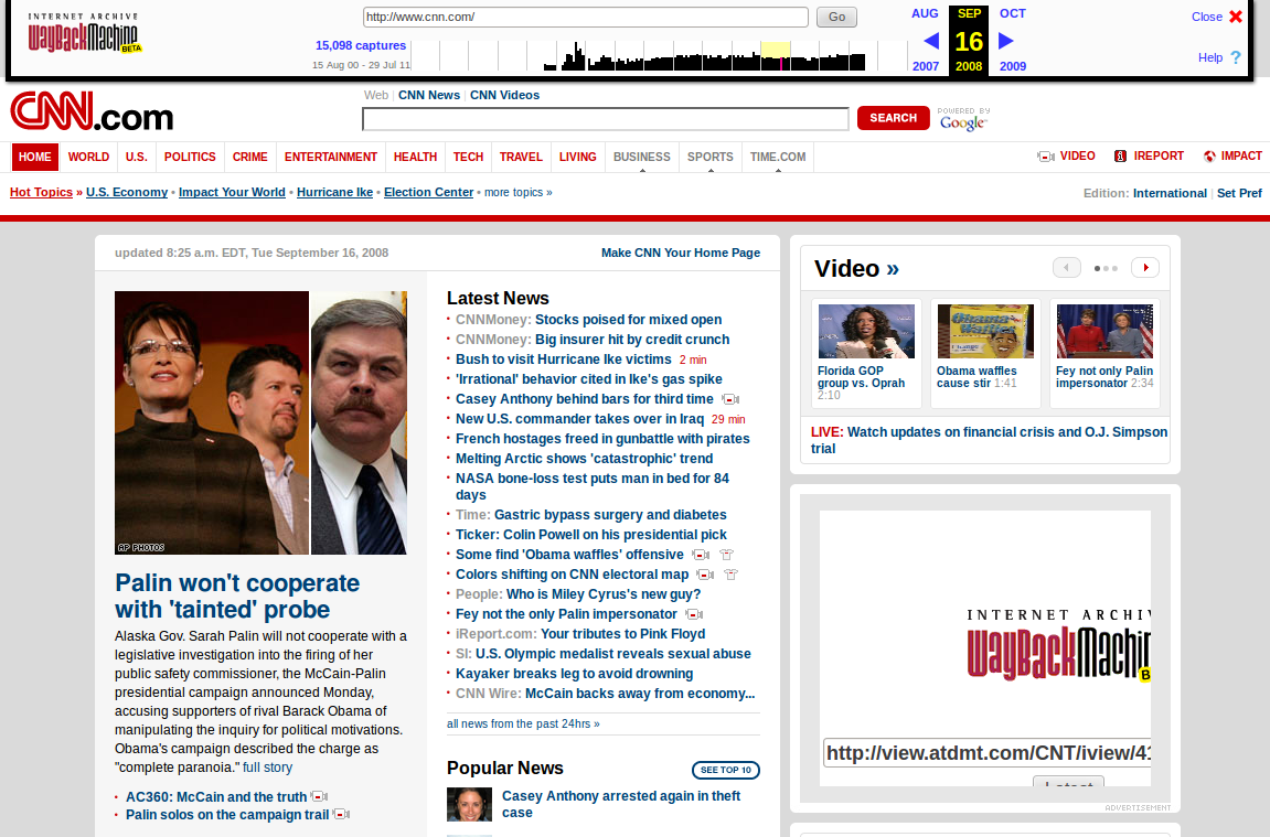 | CNN.com memento rendered in a newer browser with no leakage. |