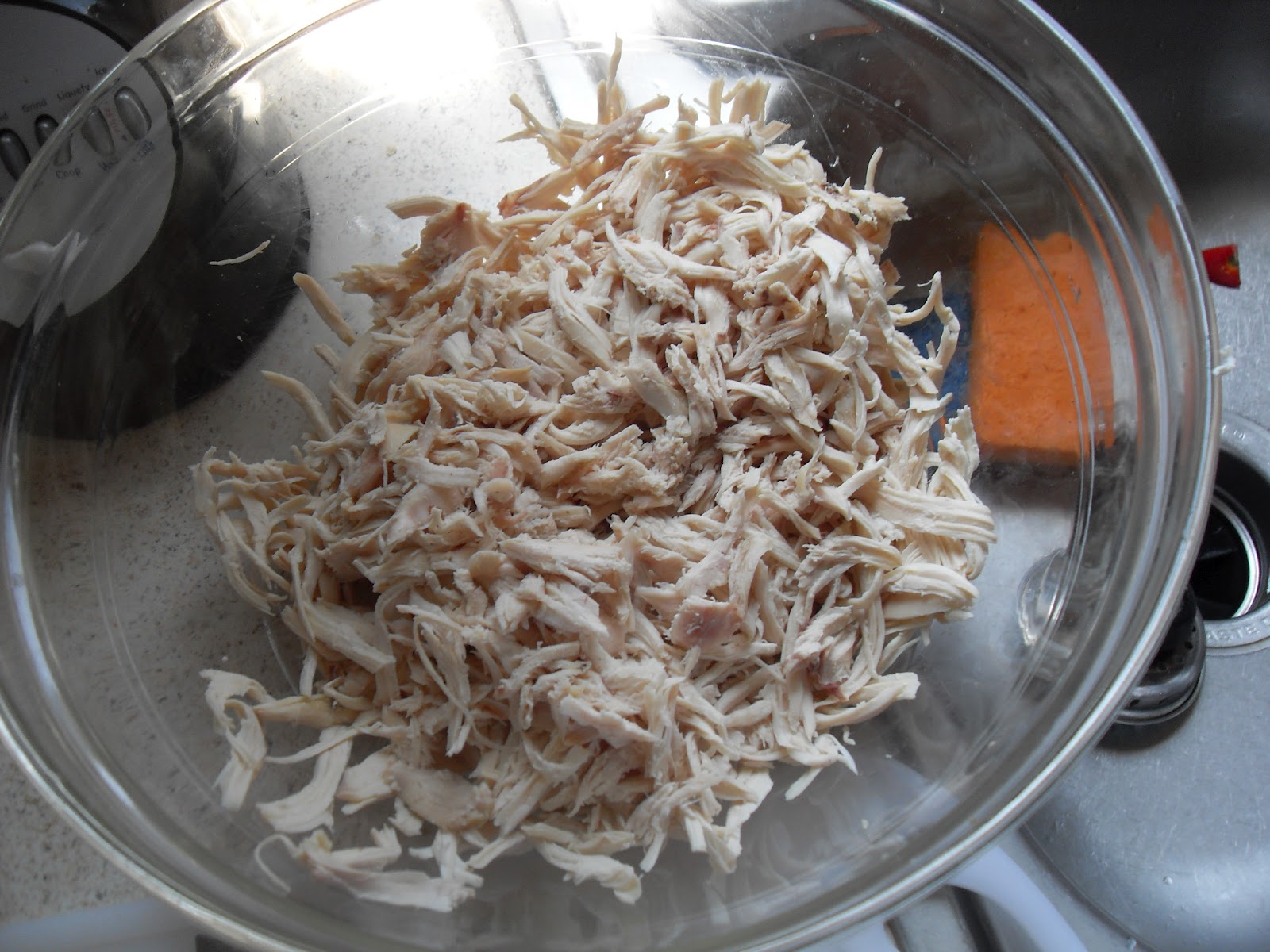 BEFORE YOU BEGIN you have to boil, and then cool and shredd chicken breast here's how: