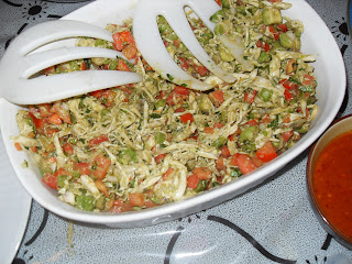 (2) Your salad is now complete  (after mixing it in a bowl I transferred to a serving dish it can be eaten right away or put in the fridge a couple of hours to let the flavors meld)