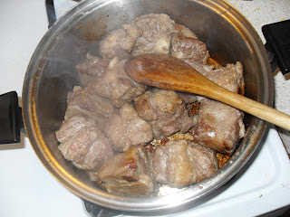 (1) Heat a large deep pot over very very high heat, when it's real hot, to test it splash some water if the water turns to little pearls and bounces around before evaporating it's ready. Add your oxtail you'll hear a thundering sound sort of and a grilled smoked smell, stir oxtails occasionally and allow to brown all over (DO NOT ADD OIL) the oxtails will render some fat, this will take anywhere from 5- 10 minutes maybe longer.