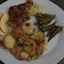 Life is speeding by and with the price of meat increasing my husband and I figured out a way to spend some quality time together by grilling out without shelling out. We purchased some chicken leg quarters, some fresh farmers market vegetables, fettucini, pre-made pesto and shredded parmesan, romano and asiago cheeses all for under $15. It did not take long to heat up the grill and listen to our chicken sizzle and pop. After cooking the pre-seasoned leg quarters for 10-15 min. on each side we grabbed our grilling basket and threw in some fresh asparagus, sliced mushrooms and purple onion, seasoned lightly with sea salt and fresh cracked pepper.