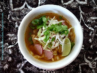 Pozole is the perfect alternative for those who with weak stomached, squeamish sensibilities and upturned, wrinkled noses say a big yuck at the mere mention of menudo with its wobbly bits of tripe. And yes, pozole has no offal in it (sometimes, unless you count the pig’s foot that I am going to drop in to make it taste like the bomb). And yes, pozole only takes about two hours to cook, versus, say, the six hours it takes to cook menudo. And no, it doesn’t stink up the whole house like menudo does. And no, pozole isn’t better than menudo, and if you even think I’m ever going to forsake a bowl of stinky outlaw menudo for its upright cousin, pozole. . . maybe I will, but just for today.