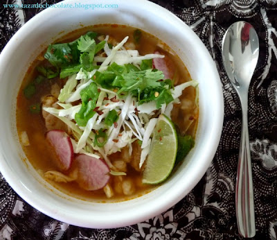 The longer you cook it, the better it will taste. And, as almost always with stews, pozole tastes even better the day after. You don’t need to add the pig’s foot, but not only does it enhance the flavor, but makes for a rich, luscious broth. Don’t worry about all the fat. You can always skim it off once the pozole is cooked. You can also skim off the all the solidified fat once the pozole has cooled down in the refrigerator. I do like to keep a little fat in the stew—it just makes it all the more flavorful.