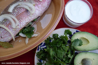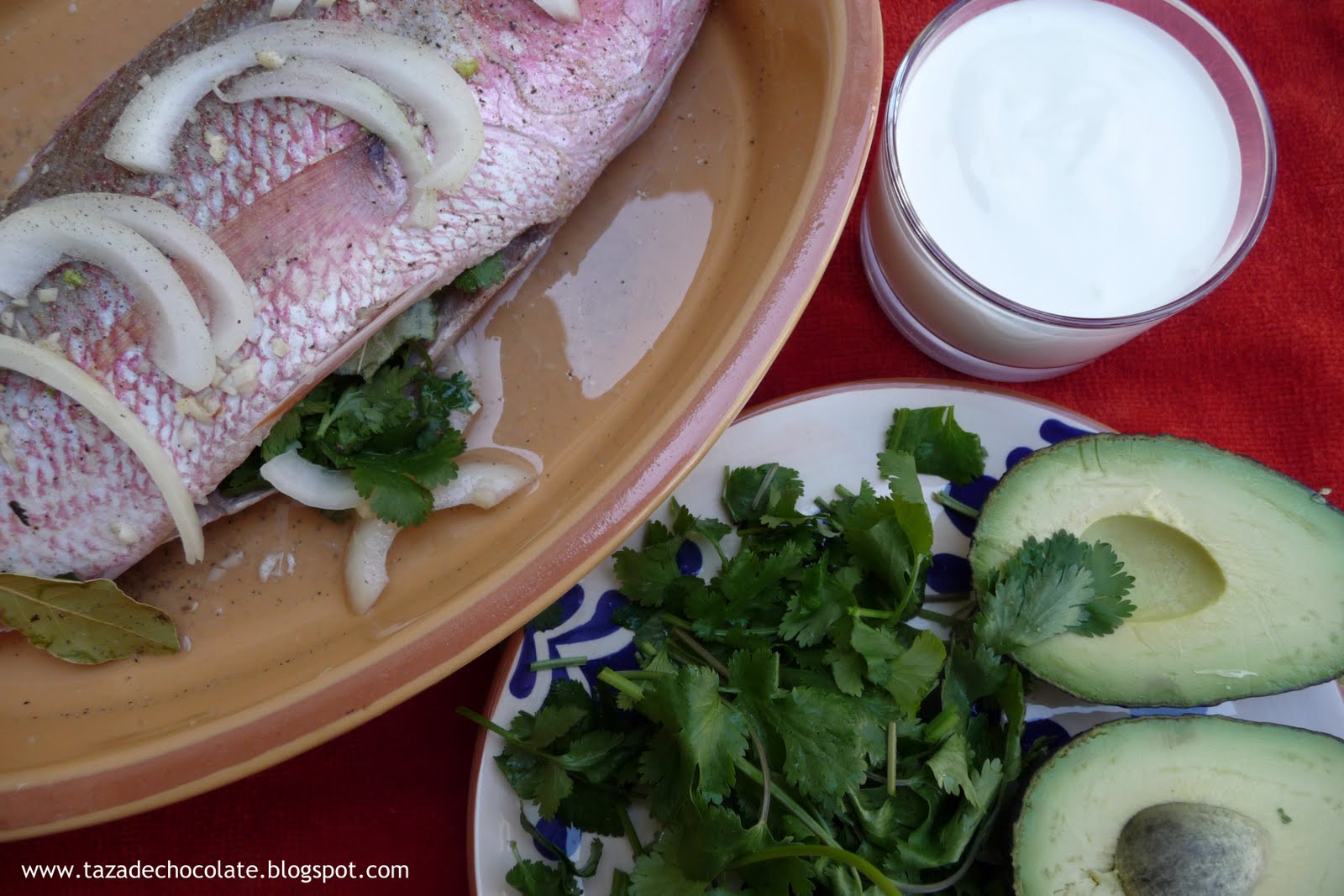 Serve with with corn tortillas and garnishes of thin-sliced cabbage, chopped cilantro, dried oregano, thin-sliced red radishes, cut lemons or limes and avocado.